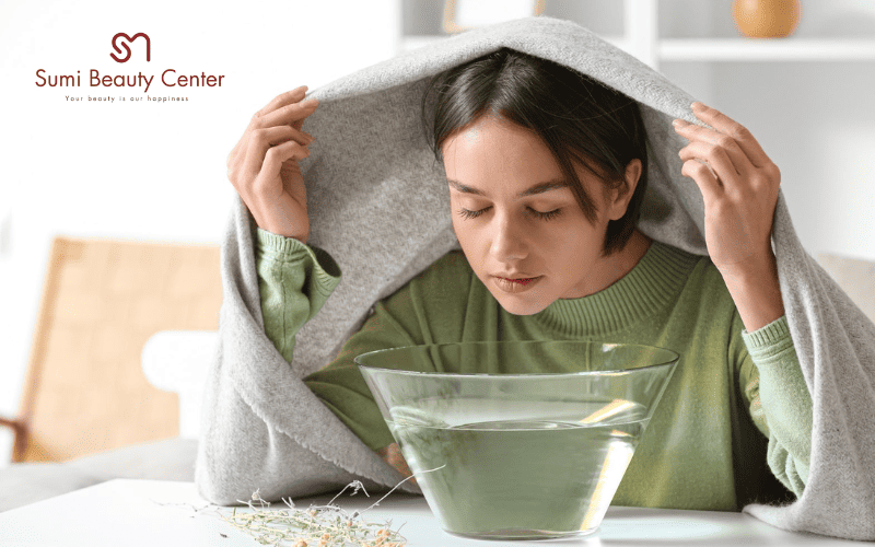 - Không dùng khi đang có mụn viêm nặng: Tinh dầu và hơi nóng có thể khiến mụn viêm nặng hơn. Với trường hợp này, hãy đến Sumi Beauty Center để được soi da và điều trị bằng công nghệ an toàn hơn thay vì tự xông mặt bằng lá ngải cứu.